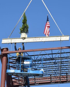 Feb. 9, 2016 Topping Out As construction progresses on Holloman's new medical facility, workers are excited to be "Topping Out" the last beam of the new facility Feb. 10.The tradition of "Topping Out" has become a custom of ironworkers, whenever the skeleton of a building is completed. Topping Out is a signal that the