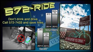 Sept. 24, 2015 Don’t drink and drive, 572-RIDE In an attempt to stop drunken driving incidents for military members Holloman Air Force Base offers free rides through the 572-RIDE program.If all else fails and military members are stranded with no way home, 572-RIDE is a safe and trouble free alternative."We are up to 780 saves this year," said