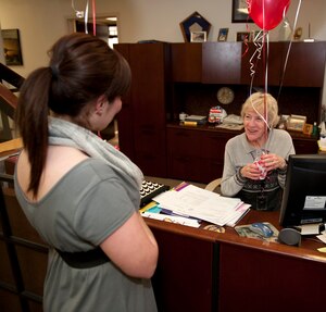 Jan. 10, 2011 Holloman members 'Kissed' by FSS Roses are red, Violets are blue, A bouquet of balloons and Kisses, May be in store for you ...... courtesy of the 49th Force Support Squadron Marketing Office who is delivering some Valentine's Day delight to 40 unsuspecting Team Holloman members."It's random acts of kindness," said Amanda