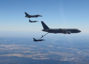 Dec. 16, 2020 KC-46s refuel F-16 Fighters Air refueling is a core competency for any fighter pilot. The goal is to extend the range or time an aircraft can remain in the air. Enabling both combat and non-combat related missions.