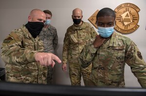 Aug. 18, 2020 49th Wing leadership visits 49th Comptroller Squadron Chief Master Sgt. Thomas Temple, 49th Wing command chief, discusses the software 49th Comptroller Squadron Airmen use on a daily-basis, Aug. 17, 2020, on Holloman Air Force Base, New Mexico. Temple entered the Air Force in October of 1996 as a financial management apprentice. Over the last 23 years,