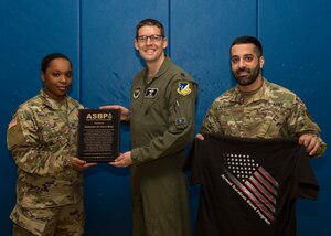 Feb. 7, 2020 First blood drive of the year Sgt. Pinique Singleton, Fort Bliss William Beaumont Medical Center laboratory technician, presents a plaque to Lt. Col. Dennis Drake, 49th Wing director of staff, Feb. 7, 2020, on Holloman Air Force Base, N.M. Drake accepted the plaque on behalf of the 49th Wing, for donating 25 gallons of blood in