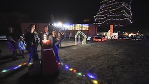 Dec. 9, 2016 Holloman lights up the holidays The Holloman Air Force Base community came together during the base menorah and tree lighting ceremony Dec. 7, at the base chapel. The evening started with a performance by children from the Holloman Elementary School and the Holloman Middle School. The festivities moved outside where the family of