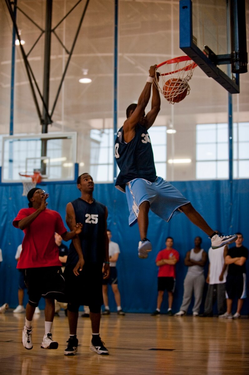 HOLLOMAN AIR FORCE BASE, N.M. -- Master Sgt. Antoine Washington, 49th Security Forces Squadron, bumps a volleyball over the net during Sports Day, Sept. 17, 2010. Airmen from different squadrons started off Sports Day with a Wing fun run, followed by other activities such as basketball, racquetball and bowling. (U.S. Air Force photo by Senior Airman Veronica Stamps / Released)