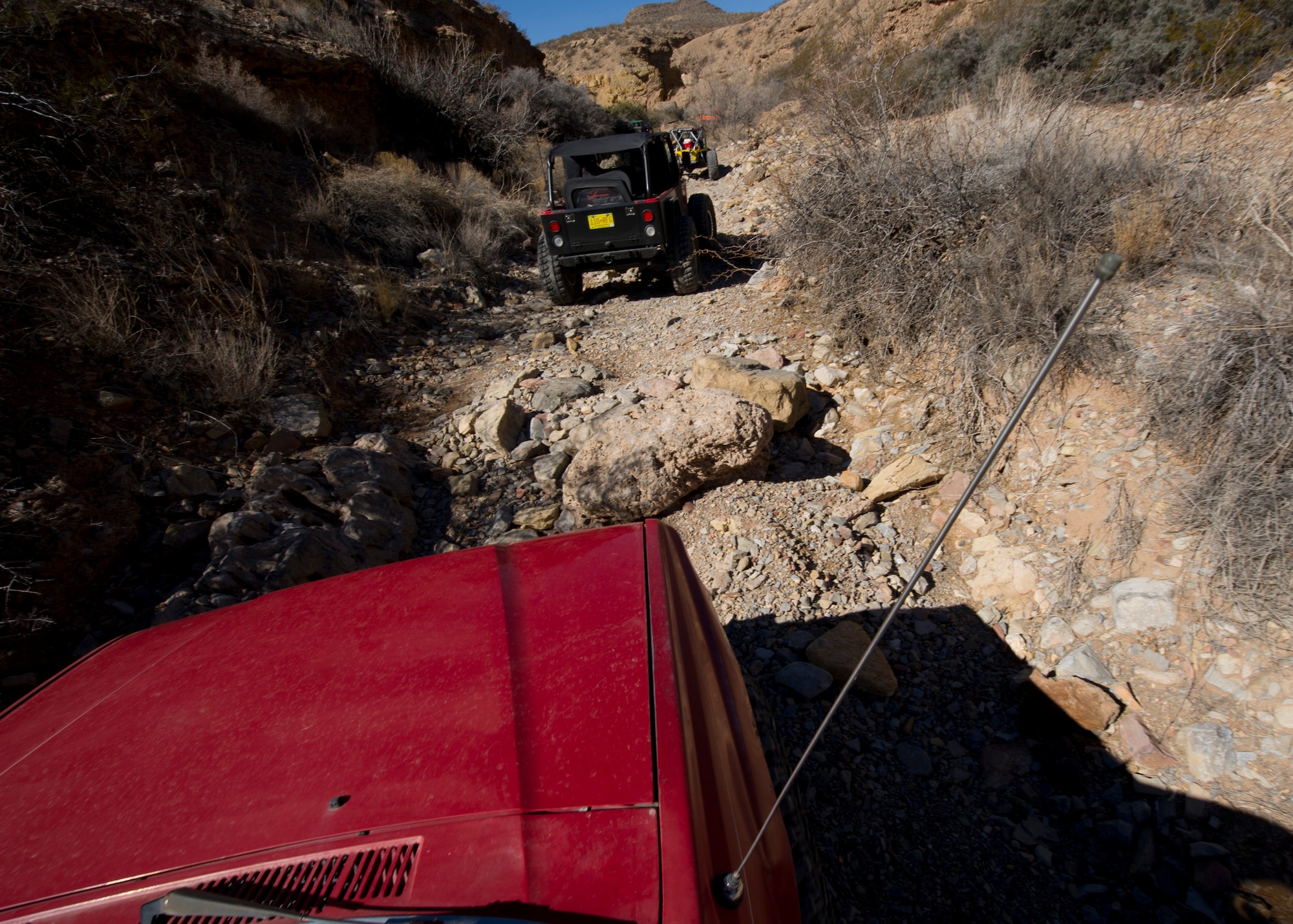 Master Sgt. James (last name withheld due to operations security) drives the extreme course during the 23rd Annual Chile Challenge Off-Road Trail Event in Las Cruces N.M. Feb. 21. James, a sensor operator with the 29th Attack Squadron at Holloman Air Force Base, N.M., overcame many off-road obstacles in his customized 4x4 vehicle during the three-day event. The Chile Challenge, sponsored by the Las Cruces Four-Wheel Drive Club, gave drivers of all experience levels the opportunity to ride on trails led by an experienced trail leader. (U.S. Air Force photo by Senior Airman Joshua Turner/Released)