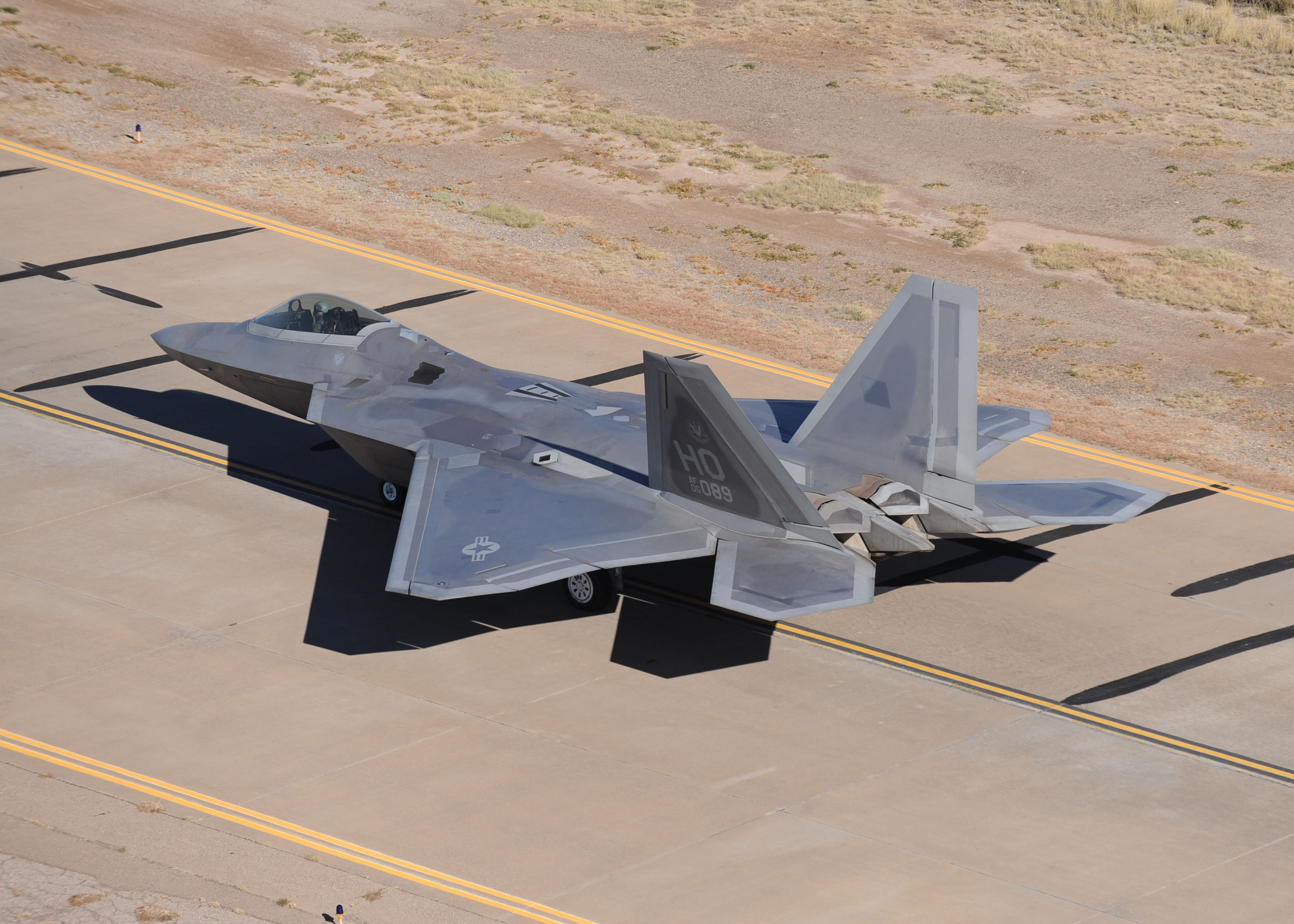 HOLLOMAN AIR FORCE BASE, N.M. -- An F-22A Raptor assigned to the 49th Fighter Wing taxis down the runway here, Nov. 3, while Lockheed Martin videographers were here to document the F-22. (U.S. Air Force photo by Senior Airman Rachel Kocin)
