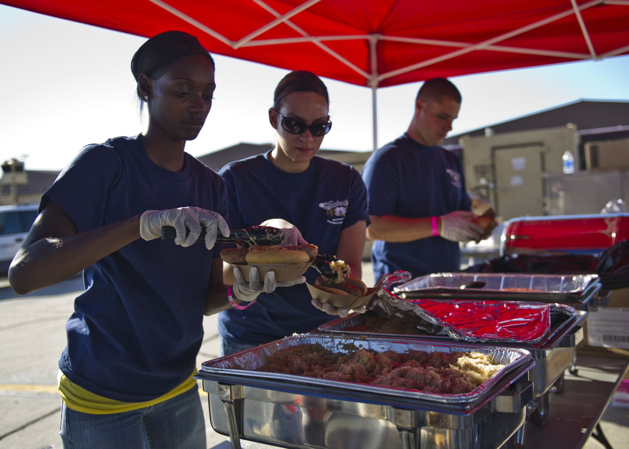 HOLLOMAN AIR FORCE BASE, N.M. -- Members of Team Holloman volunteer prepare traditional German food Sept. 24, 2011, at the German Air Force’s 15th annual Oktoberfest. People from the local area outside of Holloman attended the event and enjoyed a night of live music, food and refreshments. (U.S. Air force photo by Airman 1st Class Eileen Meier/Released)
