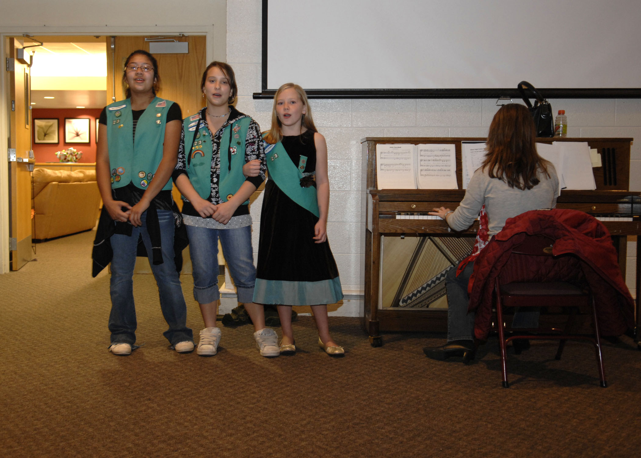 The Girl Scotts sing Christmas songs at the Families apart dinner put on by spouses of the Civil Engineer Squadron at the community center on Holloman Air Force Base, New Mexico on December 12, 2007. The families' apart dinner is put on to help support families who have deployed spouses. (U.S. Air Force photo/Airman 1st Class Rachel A Kocin)