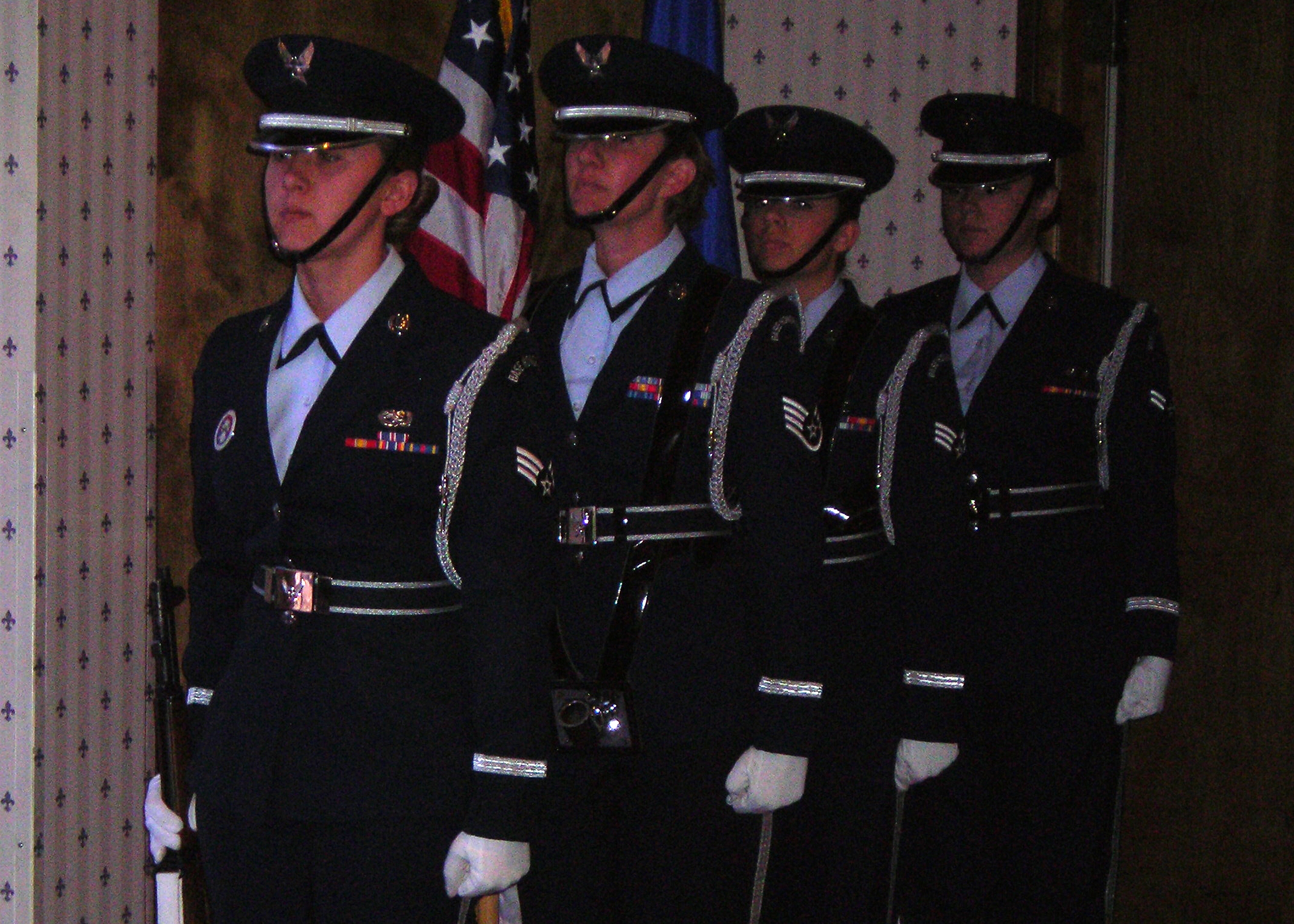 Members of the Steel Talons Honor Guard prepare to post the Colors during the National Women's History Month closing luncheon. (U.S. Air Force photo by Senior Airman Terri Barriere)