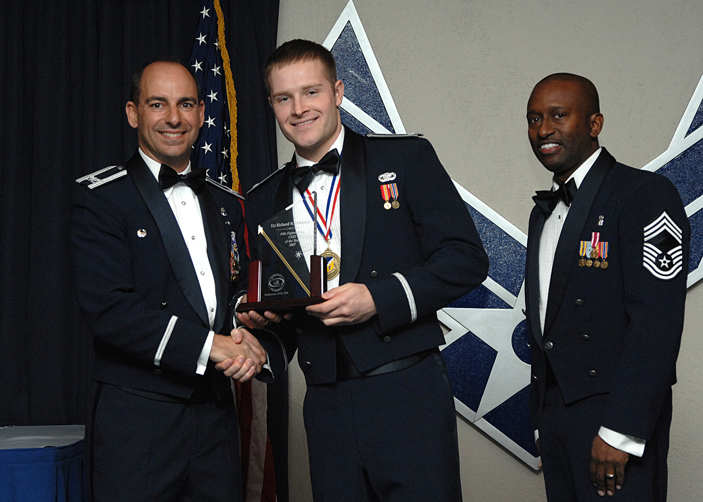 First Lieutenant Richard N. DeRohan of the 49th Security Forces Squadron wins the Company Grade Officer of the Year Annual Award February 23 2008, on Holloman Air Force Base, NM. The Annual Awards showcases the brightest stars of Holloman Air Force Base officer, enlisted and civilian alike. (U.S. Air Force photo/Airman 1st Class John D. Strong II)